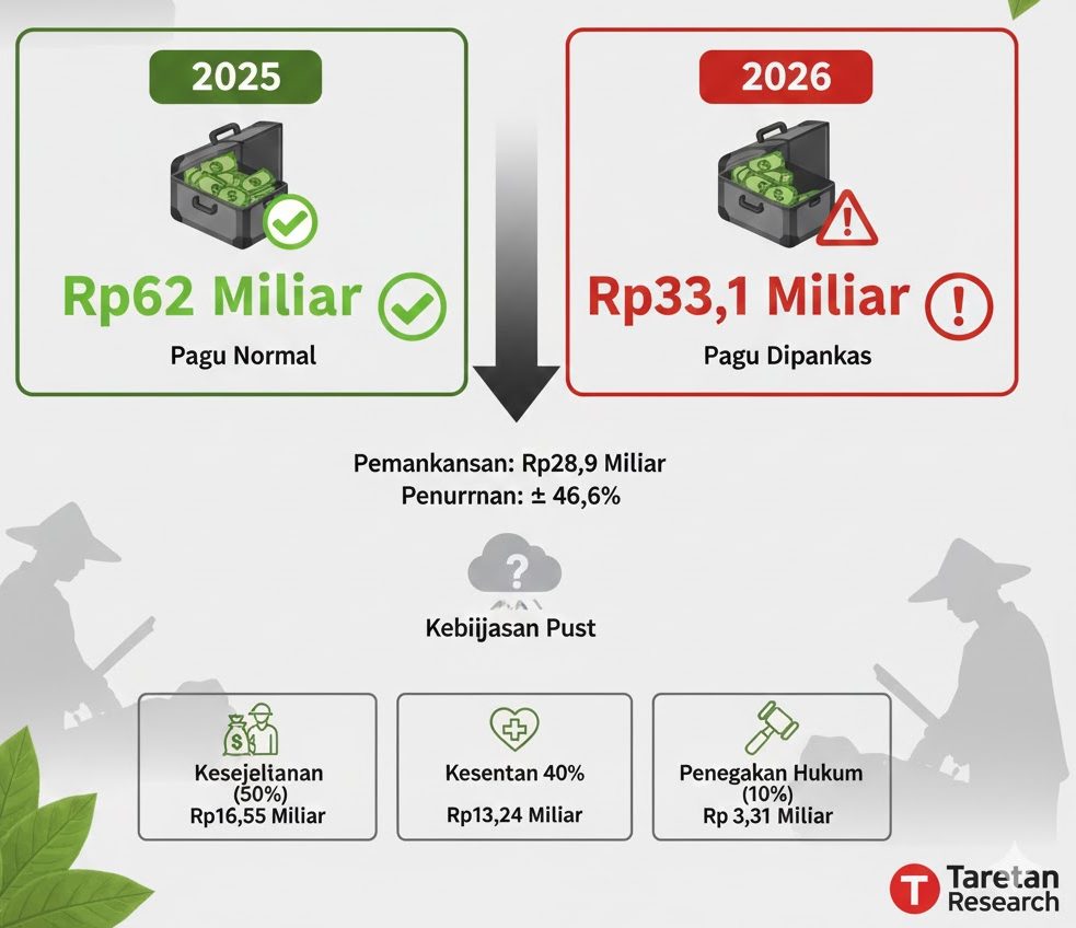 Berdasarkan data resmi, alokasi DBHCHT Sumenep tahun 2026 hanya berada di angka Rp33,1 miliar, merosot tajam dibandingkan tahun 2025 yang mencapai Rp62 miliar. Pemangkasan ini bukan tanpa dampak; nasib Bantuan Langsung Tunai (BLT) bagi ribuan buruh tani dan buruh pabrik rokok kini berada di ujung tanduk.