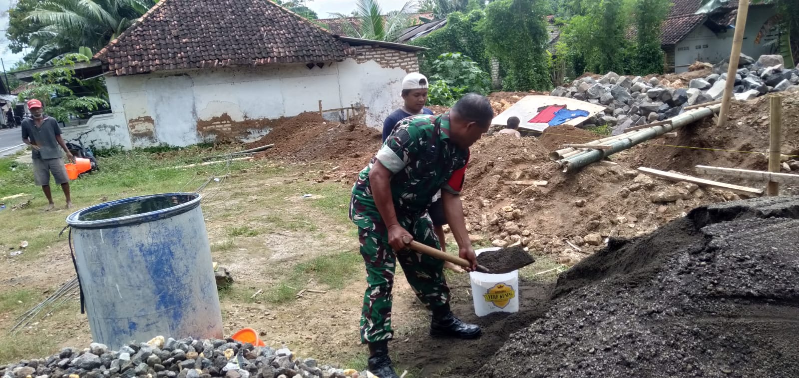 Kegiatan difokuskan pada tahap awal pembangunan, yakni pengecoran pondasi. Babinsa turut terlibat langsung bersama warga dalam proses pengadukan material hingga perataan pondasi.