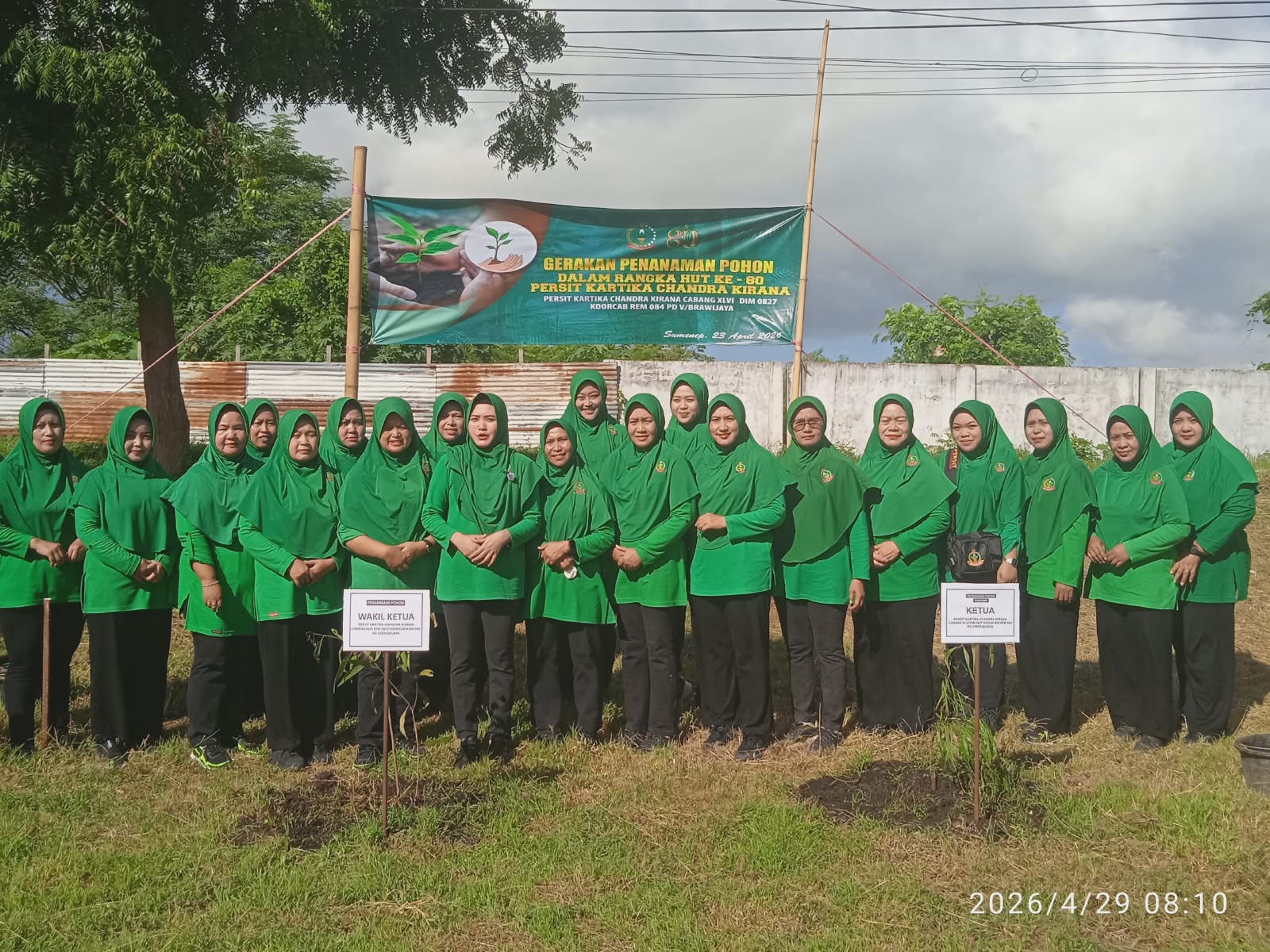 SUMENEP – Persit Kartika Chandra Kirana (KCK) Cabang XLVI Kodim 0827/Sumenep menggelar aksi penanaman pohon dalam rangka memperingati HUT ke-80 Persit KCK. Kegiatan tersebut berlangsung di Lapangan Adirasa, Desa Kalianget Timur, Kecamatan Kalianget, Kabupaten Sumenep, Rabu (29/4/2026).